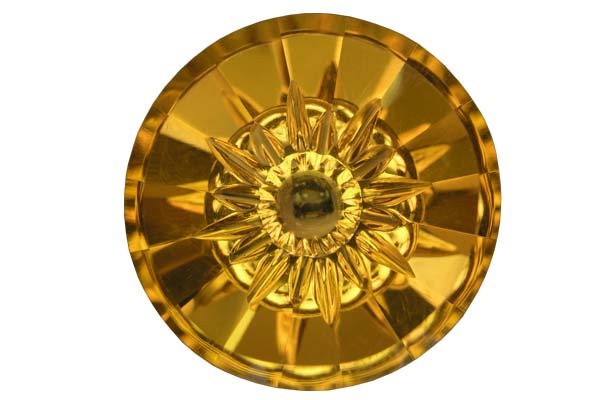 Very stylish Brazilian citrine in a modern, attractive cut. A single round, flat facet comprises the table which extends over the entire face of the stone. The pavilion is a faceted, radiating cone that tapers to a circular, concave-cut culet. Groves in the pavilion facets form a starburst pattern that is visible from the face and also from reflections from the pavilion sides. Will make a fantastic piece of modern jewelry.