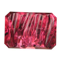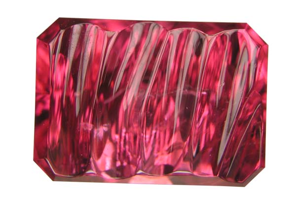 Super pinkish red spinel from Vietnam featuring a ripple-top design. In person the color is very lively. This gemstone is essentially flawless and comes with a GIA certificate confirming natural origin spinel. This gemstone was cut by John Dyer.