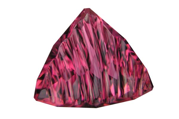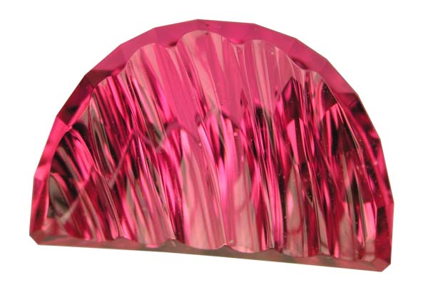 Another carved ripple-top tourmaline from old Brazilian Cruziero Mine stock. Wonderfull reddish pink color which is a a classic for this material. This stone was cut by a well known, multi-award winning cutter. Nice big eye-catching stone with a very modern cutting style.